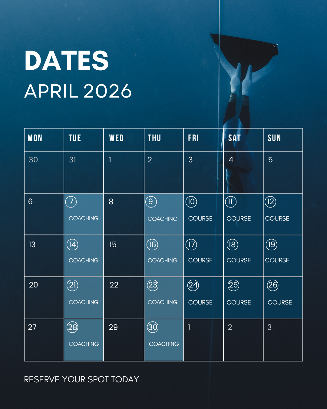 Our training covered a wide range of key aspects: technique, mental preparation, competition strategy, dry and pool drills to continue back home, stretching, and crucial details like pre-dive breathing and long-term training periodization.
